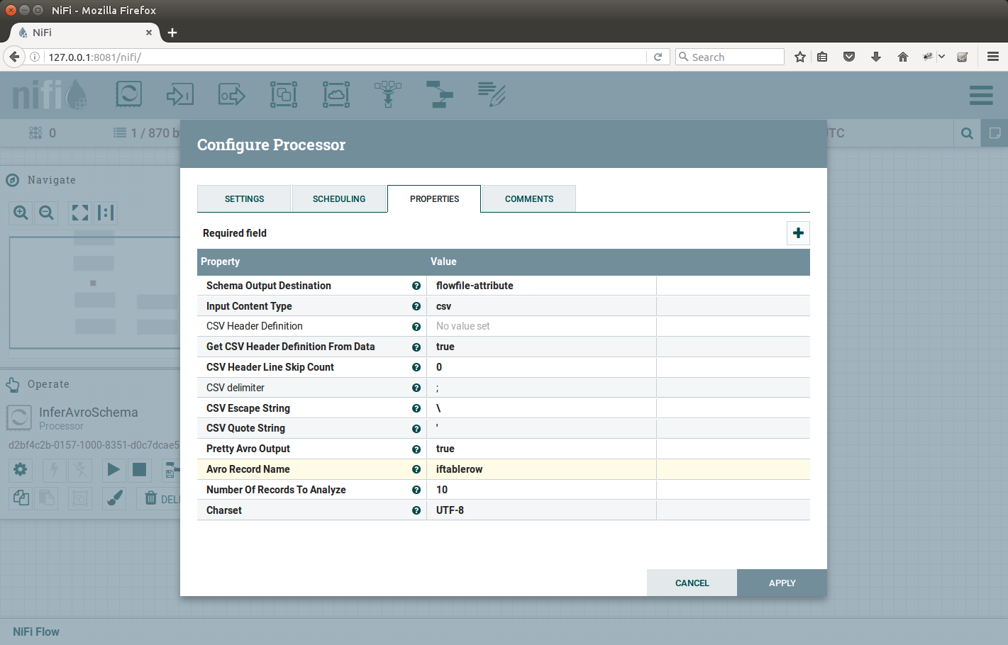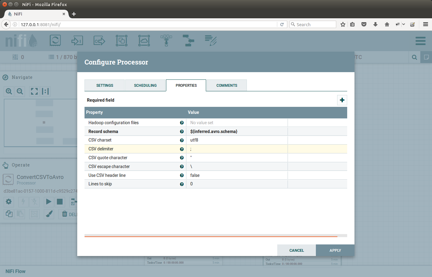 ConvertCSVToAvro configuration |