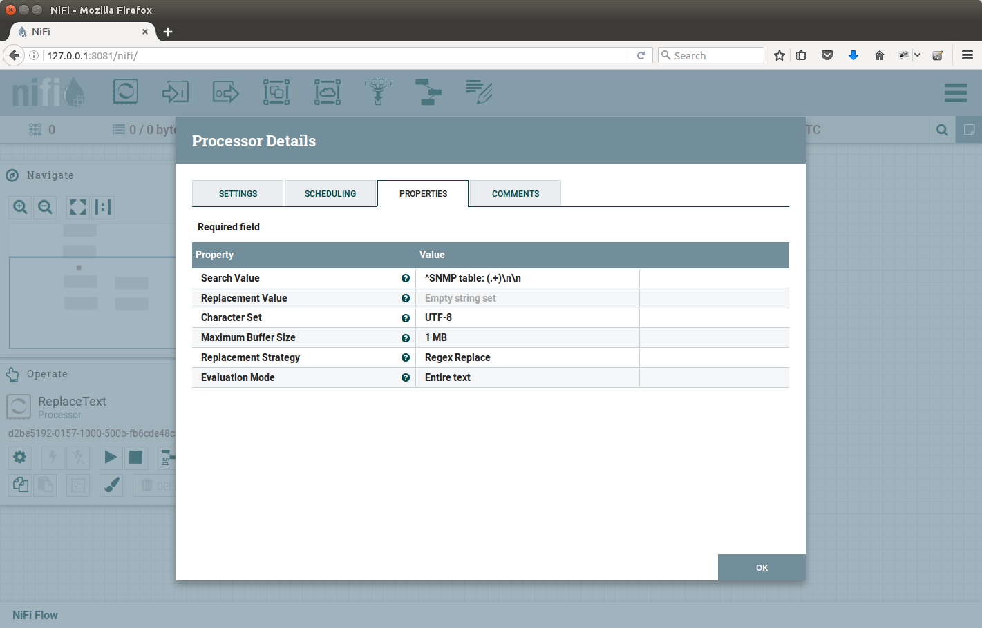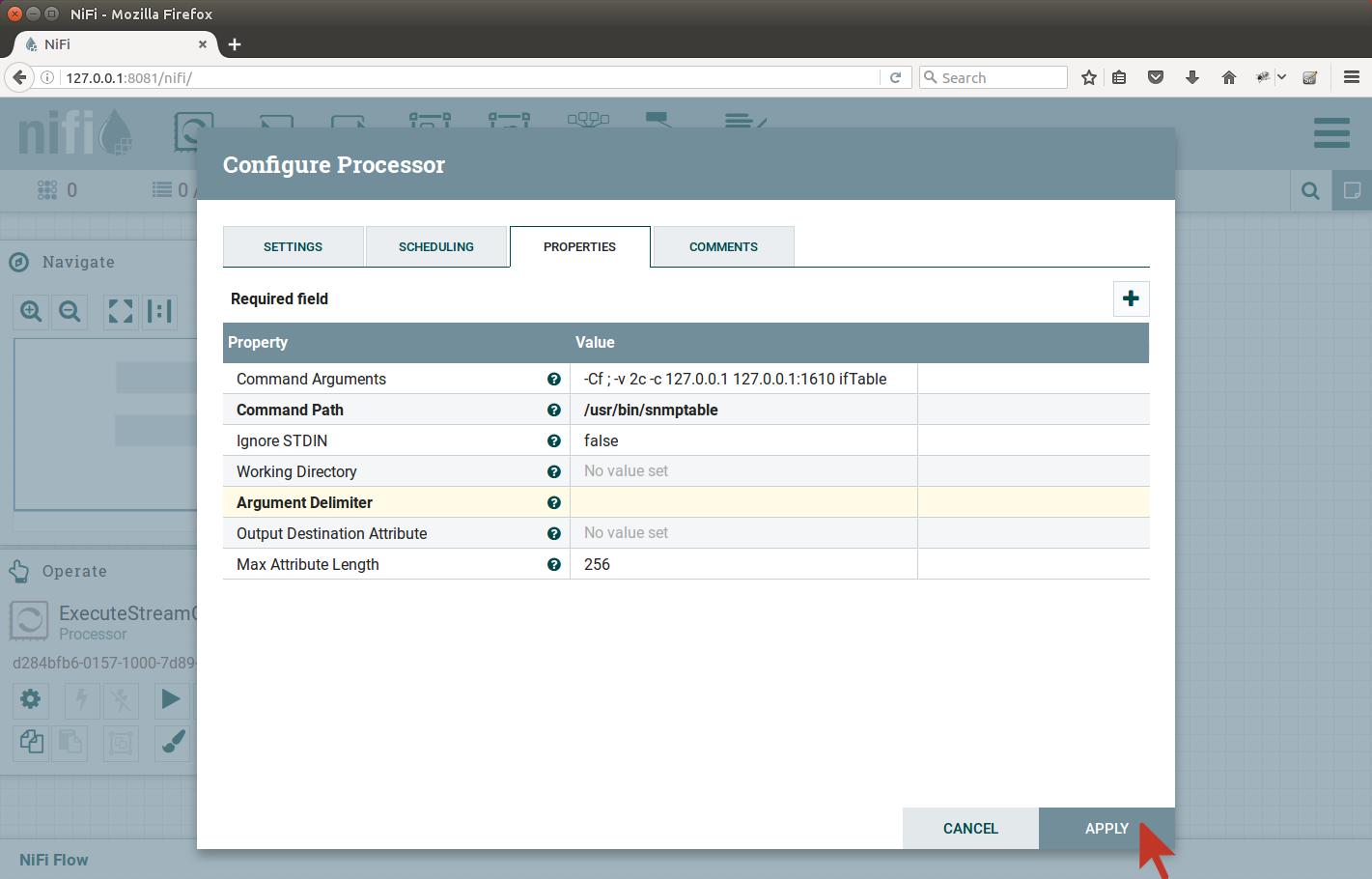Although there is SNMP processor in NiFi available, we will proceed with different approach, since the processor does not support querying SNMP tables. Steps in this article include: