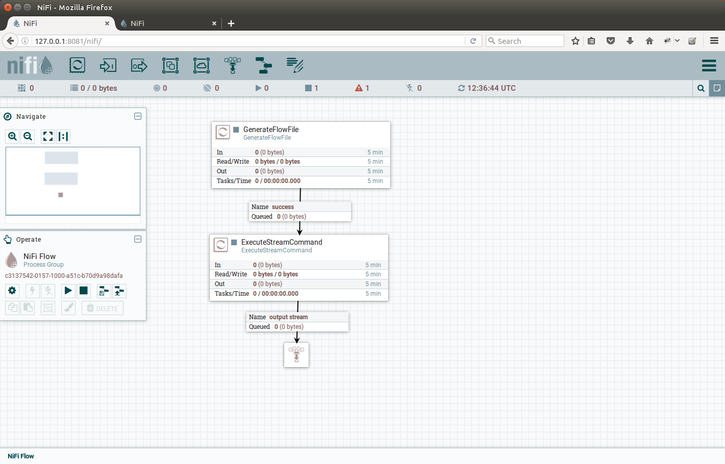 Lets test our development so far, add the Funnel, connect it to ExecuteStreamCommand output stream relationship: